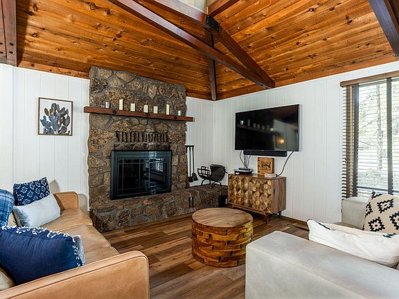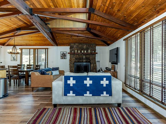 Discover this charming Tumalo Style Cabin in Sunriver, featuring 2 beds/2 baths. This turn-key furnished, single-level home boasts an open kitchen, dining, and living area concept. The great room is adorned with wood accents, exposed beams, & vaulted ceilings. Enjoy outdoor living w/ a spacious deck & a large storage shed. The kitchen offers a tiled backsplash, maple cabinets, granite counters, & stainless-steel appliances. Bathrooms include tiled showers, heated floors, & updated fixtures. The home features updated lighting, a rock/wood fireplace w/ a gas start, & cool central A/C. Situated on a peaceful, treed lot, the property includes parking for 4 cars. Furnishings include 4 bikes & 6 SHARC passes, paid through the year. The owner rents for $295/night in summer w/ solid bookings. Located within walking distance to stores, restaurants, & SHARC, and close to walking/biking trails. Enjoy Sunriver amenities: tennis, golf, kayaking, and proximity to Mt. Bachelor and Cascade Lakes