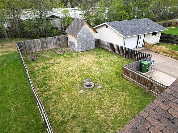 This beautifully upgraded 3-bedroom, 2-bathroom home is located in a family-friendly neighborhood, just minutes from schools, parks, and recreation. The main floor boasts a spacious kitchen with modernized cabinets, a cozy living room with a charming wood fireplace, and a large master bedroom featuring his-and-her closets. You'll also find a generously sized second bedroom. The main bathroom has been updated with sleek tile and lighting, and it offers a luxurious, oversized jetted tub. The fully finished basement includes a sizable family room, complete with built-in shelving, and ample space for a pool table. It also features an upgraded 3-piece bathroom with slate finishes, a laundry room, and an additional bedroom with an upgraded window. The basement is equipped with durable vinyl plank flooring, a backflow preventer, and a check valve for added peace of mind. Outside, the large, private fenced yard provides an excellent space for entertaining and plenty of room to build your dream garage. The 10x10 shed offers additional storage for lawn equipment or outdoor toys. This home is perfect for first-time buyers, rental investors, or anyone looking to downsize from a larger home.