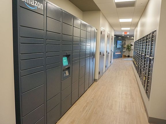 The building also offers keyless entry, an elevator, trash chutes, and an Amazon Hub for secure package delivery.