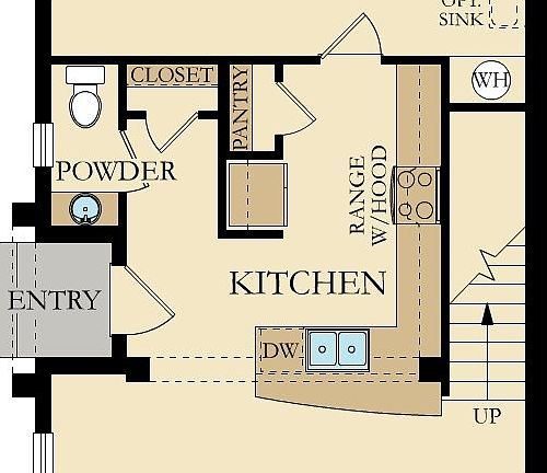 The Auburndale Plan is a two-story townhome with two bedrooms, two and a half baths, and a two-car garage. This home offers an open floor plan with kitchen, living room, and dining room. The first floor of this home is completed with a powder room. The second floor includes the owner's suite with large walk-in closet and outdoor access to a balcony, owner's bath with separated shower and tub, and a loft or optional third bedroom.