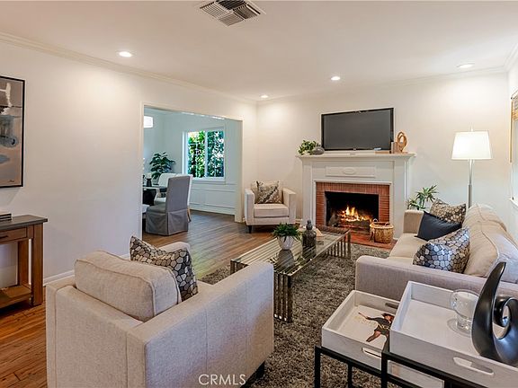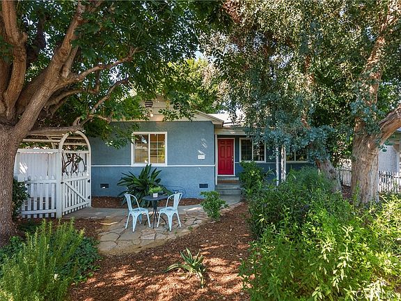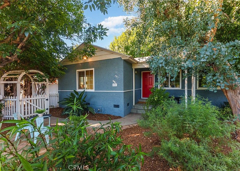 A white picket fence, charming arbor and a multitude of mature trees and drought-tolerant landscaping welcome you into the inviting yard of this classic Sherman Oaks traditional. Behind the Red front door are beautiful pegged hardwood floors and a traditional fireplace create a warm focal point in the bright and airy living room, filled with natural light from abundant windows.The formal dining area features timeless wainscoting, while the galley kitchen offers custom cabinetry, double ovens, built-in microwave, 5 burner stove top, colorful tile accents, and generous storage. There are four bedrooms—one of which makes an ideal home office, complete with French doors opening to the backyard.The spacious primary suite includes a decorative fireplace and a comfortable sitting area that can easily double as a family room, along with an adjoining half bath. Outside, a large deck beneath a mature Ash tree provides the perfect setting for outdoor dining and entertaining. The yard also features Loquat, Meyer Lemon, Eureka Lemon trees and vegetable garden beds.Additional highlights include central air and heat, washer and dryer, all freshly painted white. Located within the highly sought-after Kester Avenue Elementary School District.Lovingly cared for by the same family for 27 years, this home is brimming with character, charm, and endless potential to make it your own—a true Sherman Oaks gem ready for its next chapter.