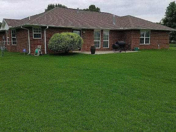 Impeccable home in NORTH ROCK CREEK! This home is spotless and move in ready on a corner lot. Approx. 1.25 ac. Only a couple of miles from I-40 and Shawnee Mall on paved roads. Living room is spacious w/corner gas fireplace. The kitchen features oak cabinets, granite counter tops, 2 year old stainless dishwasher, electric range, and microwave, a new kitchen faucet. Their are TWO breakfast bars. The dining space is spacious enough for a large table. There is a walk in pantry. The laundry room is just off the kitchen. Interior doors are all white with new lever handles. Guests bedrooms are spacious with roomy closet space. Master bedroom has plenty of space for king bed. Trey ceiling. Walk in closet off the master. Master bath has a tub/shower and walk in closet. Home has most 9' ceilings. Alarm System, gas hot water heater, chain link fence, DRY STORM CELLAR, storage building. ALL DRAPES are reserved. Rods remain, 2" blinds remain. ALL NEW LIGHT FIXTURES & CEILING FANS.