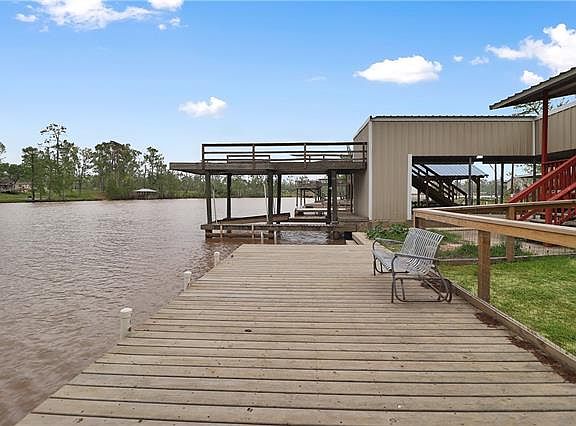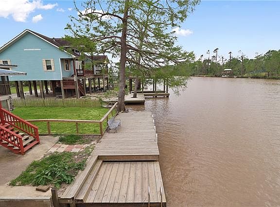 Waterfront oasis located only minutes from town. Enjoy the waterways of SWLA right from your own home. This 2 bed 1 bath home features and open floorplan, laminate flooring throughout and water views from the kitchen, living room and dining room. Enjoy sitting outside without the hassle of bugs with a screened in porch and screened in patio under the home. Patio also includes a fish cleaning station and half bath. Entire property is bulk headed with a new swimming dock and covered boat lift rated for 6,000 lbs. Raised deck over the boat lift to enjoy the endless views of the Calcasieu River. Metal carport cover for 4 cars or extra entertaining space with family and friends. This property also comes with a cleared lot across the street to expand with a shop or another sleeping space. Home stayed high and dry for both hurricanes!
