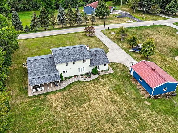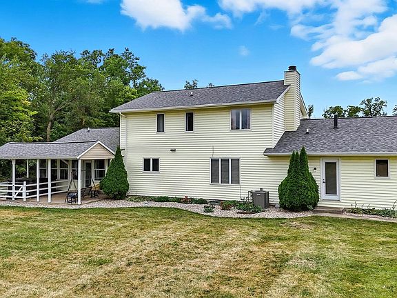 See below for a virtual tour. On a quiet street sits this 3540 sq ft (including finished basement) house on 4 acres in Leo school district. Updates include, ROOF, AC AND HANDLER, METAL SIDING AND FOAM INSULATION ON BARN, LANDSCAPING, KITCHEN AND FAMILY RM FLOORING, UPDATED KITCHEN, LIGHT FIXTURES. With all this just move in & relax on evenings on the covered porch. As you walk in the front door, let your imagination run wild w/ all the possibilities in this home including rm for extended family. To your left is a great rm w/ open concept to the formal dining rm w/ its expansive views of back yard. The solid oak floors compliment the brick wood burning fireplace. To the right there is a large eat in kitchen w/ pantry & all appliances staying. The large family rm boasts a bank of windows looking out unto the backyard. A den is just outside the 1st floor main suite. The lg main suite comes w/ walk in closet & roomy bthrm w/ tiled walk in shower. Upstairs are three bedrms w/ one bedrm having walk in closet & full ba which could be an inlaw suite. The other two bedrooms share a full ba. The finished bsmt has a workout rm, another family rm & bar area. Off the formal dining is a half ba & laundry. This home also comes with an insulated hobby barn complete w/ electric.