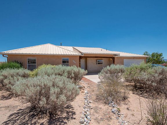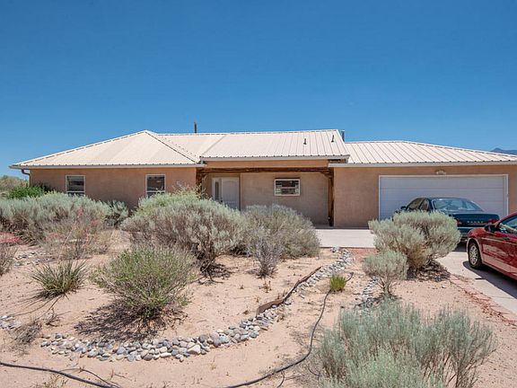 Come home to this awesome open floorplan home on 1/2 acre in a quiet area nestled in with much larger/expensive homes. Great room/Dining/Kitchen open area with fireplace, kitchen island, plenty of counterspace and storage. All bedrooms are large with tons of natural light and larger closets. Home could use a new owner to offer some TLC. Metal roof, large 2-car garage plus large storage shed in backyard with great backyard access! Enjoy the Great Views of the Sandia Mtns as you entertain in the spacious from backyard! Well and Septic inspections have been completed. Well is not shared! Bonus extra large storage unit which could work as a workshop. Come see this beauty today!