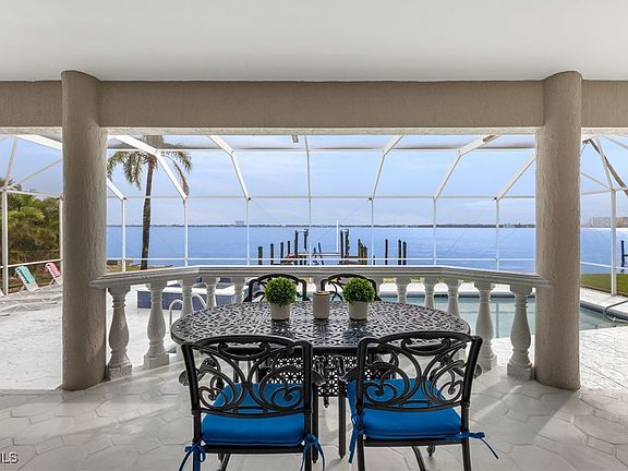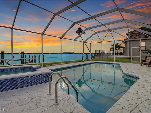 BANK IS SELLING AT LAND VALUE—FREE HOUSE WITH UPGRADES! TURNKEY & ready to move in or rent out IMMEDIATELY! Nestled in Cape Coral's prestigious Yacht Club neighborhood and just a short walk away from the beach! Boasting miles of breathtaking water views, this TURNKEY 3 bedroom 2 bathroom residence offers an oasis of tranquility amid Florida's paradise. Step into a thoughtfully designed interior where every detail has been carefully curated to create an inviting atmosphere. The open-concept design perfectly integrates the living, dining, and kitchen areas, providing a spacious feel accentuated by abundant natural light. Wall to wall sliders invite you out to the oversized outdoor living area with a newly renovated pool and spa overlooking the captivating Caloosahatchee River. Residents enjoy close proximity to dining, shopping, entertainment, and pristine beaches. Whether a full-time residence, seasonal retreat, or income property, this riverfront pool home provides an idyllic waterfront lifestyle in one of Florida's most coveted destinations! NO INTERIOR FLOODING DURING ANY OF THE HURRICANES!!! UPDATES: ROOF -2016, A/C -2023, WATER HEATER -2023, POOL PUMP -2024, POOL HEATER -2024, and REMODELED POOL- 2024.