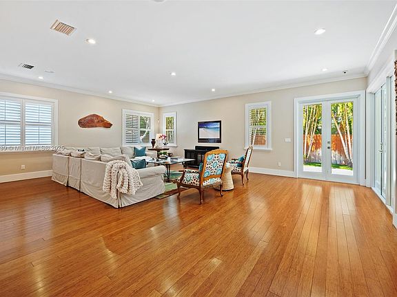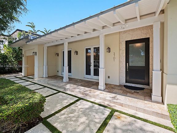 This easy-care, accessible South Miami home is a brilliantly sunny single-family 2012 construction with no steps and a fenced zero-maintenance turf yard. The private outdoor space is lush with mature trees and harbors a long, broad, covered tumbled marble patio. Solid bamboo floors unify the open-concept living space anchored by an expansive chef’s kitchen feat. an oversized plumbed island. The primary suite has patio access and a large wardrobe closet with built-ins. Just a few blocks from thriving Downtown SoMi, it’s also convenient to top schools, various parks incl. landmark Dante Fascell Park, and is just 5 mins from US1 for quick access to all points Miami. Metal roof. Abundant impact windows/glass doors. Tankless water heater. Giant laundry. Large shed. Sunset Elementary District.
