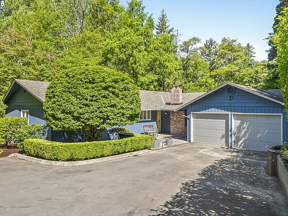 OPEN HOUSE'S SATURDAY 11/1 1-3PM + SUNDAY 11/2 12-2PM Main-level living with flexible live + work layout on nearly half an acre. This beautifully updated 1962 Daylight Ranch offers timeless design, abundant natural light, and a private creek-side setting. Multiple skylights and French doors fill the home with natural light and seamless indoor–outdoor connection. The main level features a spacious living room with fireplace, a gourmet kitchen with Sub-Zero refrigeration, open dining area, and a dedicated office or library—ideal for work or creative pursuits. Downstairs, a large bonus area offers multi-generational flexibility for guests, studio use, or additional living space. Additional highlights include refinished hardwood floors, three fireplaces, a gated driveway, and a two-car garage with EV charger plus ample parking. Custom tiered decks overlook mature trees and a gently flowing creek, creating a rare sense of privacy and calm just minutes from city life. [Home Energy Score = 2. HES Report at https://rpt.greenbuildingregistry.com/hes/OR10239541]