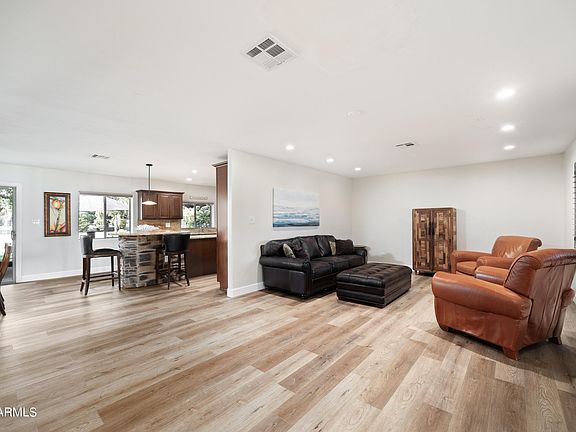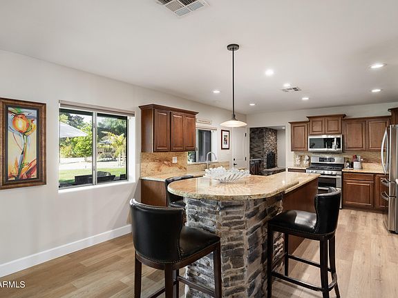 $100K PRICE IMPROVEMENT! Stunning property on over an acre of land, offers picturesque views overlooking the 2nd hole of the Orange Tree Golf Course. Main house features 3 bedrooms and an office, a well-appointed kitchen w/ granite countertops, gas range, & ample storage space. Added in 2018, a full guest house w/ its own kitchen, provides versatile living arrangements for guests or extended family members. A beautiful saltwater pool, graces the expansive backyard, perfect for relaxation & entertainment. Automatic gates flank the circular driveway, ensuring privacy & offering ample parking space. Situated within the esteemed 3C's school district & conveniently close to community amenities, making it an ideal choice for buyers seeking both comfort & convenience. NO HOA!