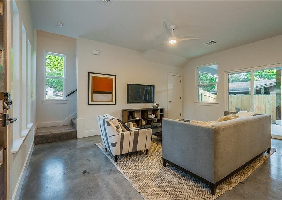 Enjoy living East Austin style,close to DT Austin and Mueller. Great location convenient to everything! Interior walls freshly painted. Refrigerator,washer/dryer convey to buyer. Open floor plan- living, kitchen and dining all together plus flex space for office, another dining or play area. Kitchen has white Quartz counters, stainless appliances, massive breakfast bar. Tankless H2O heater. Large covered patio in private and fenced backyard. 1 car attached garage w/electric car plug in, 1 reserved spot in drive. Price reduced! NO HOA DUES!