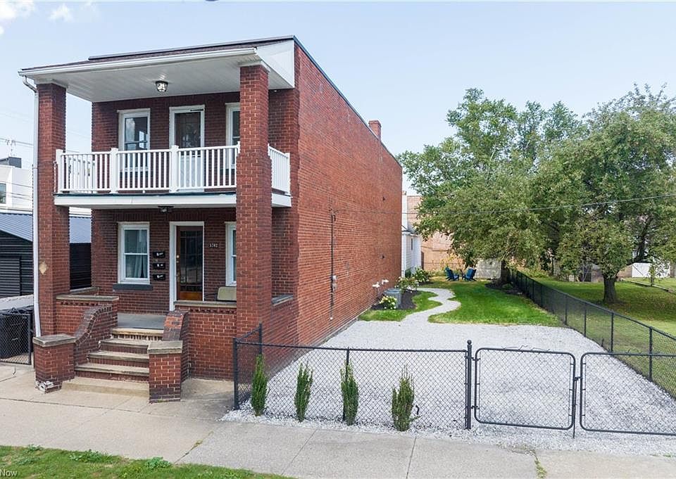 Modern luxury meets historic charm in this beautifully renovated ground-floor residence in Cleveland's sought-after Detroit Shoreway neighborhood. Perfectly located at Herman Avenue and West 58th, you'll be just steps from the Lakefront bike path and a short walk to Edgewater Beach and Gordon Square's shops, cafes, and restaurants. This spacious 2-bedroom, 1-bath home offers 1,368 square feet of living space, a covered front porch, and a rare 3,300-square-foot fenced-in side yard perfect for outdoor relaxation or entertaining. Fully updated in 2022, the home features a stunning modern kitchen with quartz countertops, stainless steel appliances, custom Shaker cabinetry, and a cozy built-in breakfast nook with storage. Original 100-year-old oak hardwood floors run throughout, blending historic beauty with modern convenience. The luxurious bathroom includes marble tile, black fixtures, a floating vanity, and an accordion glass shower door. Enjoy the convenience of in-unit laundry with a 2022 Samsung high-efficiency washer and dryer, plus smart home upgrades like a keyless entry lock and Ecobee smart thermostat. Additional perks include off-street parking, basement storage, and all landscaping and snow/ice removal included in the rent. This move-in-ready home offers modern comfort, low-maintenance living, and timeless character in one of Cleveland's most desirable neighborhoods. Please note this unit is part of a beautiful renovated duplex, and this listing is for the spacious downstairs unit.