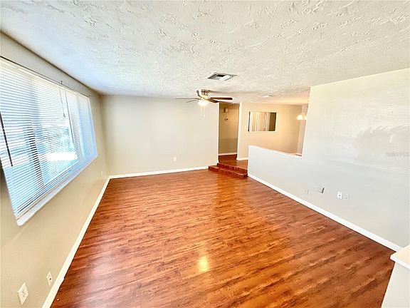 ATTRACTIVE 3 BED 2 BATH WITH SPACIOUS 1 CAR GARAGE/ NO CARPET - ALL WOOD LAMINATE OR CERAMIC TILE FLOORS. COZY STEP DOWN FAMILY ROOM WITH WOOD LAMINATE FLOOR. SEPARATE DINING ROOM , GOOD WORKABLE KITCHEN W NEW FLAT TOP ELECTRIC STOVE, SINK/FAUCET, AND NEW CEILING LIGHTS. SPLIT BEDROOMS - MASTER ON THE RIGHT HAS ITS OWN BATH AND WALK IN CLOSET AND THE OTHER 2 ARE SPLIT BY A FULL BATH. ALL NEW CEILING FANS . MANY OPTIONS FOR REAR LANAI / PORCH 8X32 FT LONG. FENCED REAR YARD. EXTRA WIDE DRIVEWAY - NO NEED TO SHUFFLE CARS. VERY CLEAN AND READY FOR NEW FAMILY. GOOD CREDIT 620+ , INCOME 3X RENT AND CLEAN BACKGROUND, NO PRIOR EVICTIONS - CREDIT / BACKGROUND $65 PER ADULT 18+