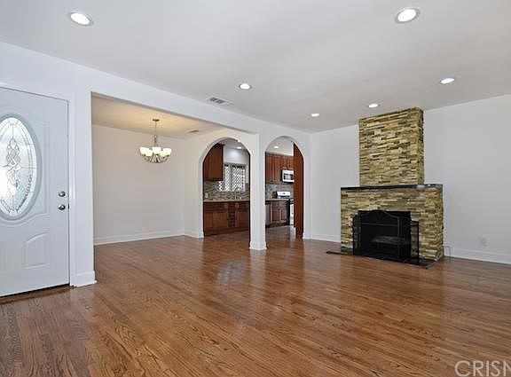 Completely redone from top to bottom. Beautifully updated Calif. traditional on large sweeping corner lot in the hottest neighborhood in Sherman Oaks. This light & airy home has NEW everything! New 30 yr. roof, double paned vinyl windows, new electrical, new copper plumbing, gorgeous oak flrs and recessed lights throughout. The kitchen is a cooks delight with all new custom maple cabinets, pantry, beautiful quartz counters and new SS appliances. The dining area is open & bright, and looks out onto the living rm with an artful stacked stone fireplc. The master bedrm suite is lovely w/ sliders out to the backyrd, and mirrored closet drs, and master bath has dual sinks, granite counters, and a lrg shower lined w/glass tiles and a rain forest shower head. There are new tubs, showers, and vanities w/granite counters in the remaining baths and mirrored closet drs in the family bedrms. Full inside laundry rm. The backyrd has a large open patio for outside entertaining, as well as a grassy play yrd, and there are new sprinklers, front & back. The property is gated for extra privacy and the double detached garage is being used as a guest house w/o permit and has a full bath and kitch. Located in coveted Kester Ave School district, this home is not to be missed!