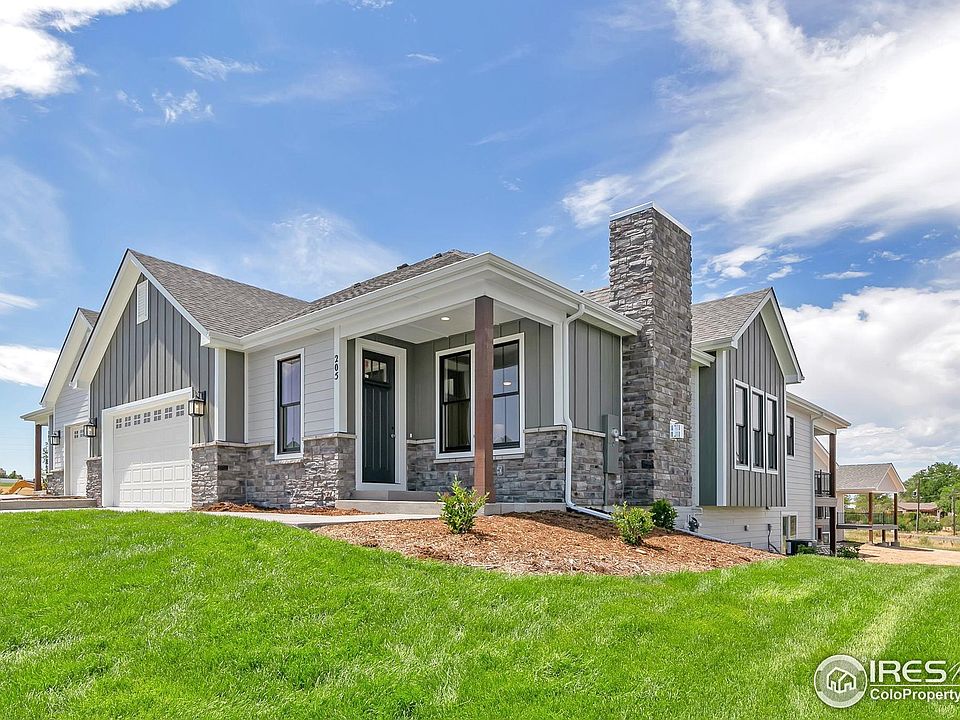 This completely customized Pine Grove model is supremely appointed! Warm, natural colors, beautiful finishes and an exceptional layout will invite you to come in and take a load off. The open kitchen, dining and living rooms form an inviting, spacious great room with arrangement options galore. A stone fireplace warms the living area, and bi-parting sliding doors open up and expand to outdoor living space on the enormous, covered back deck facing mountain views. The luxurious primary suite, complete with a deluxe ensuite bath featuring an oversized shower, double vanity, private water closet and an extra-large walk-in clothes closet is located at the back of the house. The big second primary bedroom is on the other end with its own ensuite full bath as well. The kitchen, mudroom/butler pantry, and bathrooms are loaded with lovely custom stained Alpine Euro soft close raised panel cabinetry (w/42-inch kitchen uppers), crown molding & undermounted cabinet lighting illuminating the beautiful Quartz countertops and Stainless-Steel kitchen appliances. 9' ceilings are upstairs and down. A second fireplace in the finished basement continues the coziness downstairs, where a large family & recreation room, 2 bedrooms, full bath, and storage space enhance the versatility of this home. Built to the Energy & Environmental Building Alliance's Best Practices Standards, Pine Grove comes with striking black energy efficient Andersen Composite windows, a passive radon mitigation system, 13 SEER air conditioner, 96% efficiency 2-stage Trane direct vent furnace with a fresh air ventilating system, and an on-demand direct vent tankless Navien water heater. The engineered silent floor trusses and insulated basement walls collaborate to keep quality top-of-mind. The HOA covers landscaping, water for landscaping, snow removal, trash removal, management, exterior maintenance, and hazard insurance. Ask about adding a dog run, garden areas and other personalizations you could make.