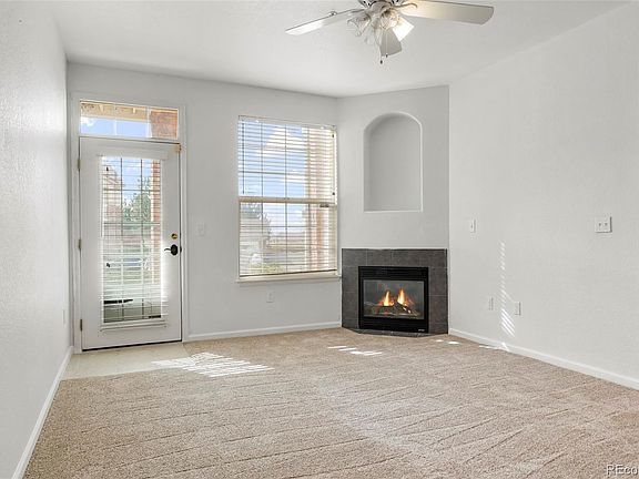 Beautiful fully updated, ground floor condo in the gated community of First Creek Farms. This spacious unit offers bright, open-concept living paired with thoughtful upgrades throughout. Welcome home to style, comfort, and private outdoor, with large windows, framing green views and a cozy gas fireplace, perfect for relaxing any time of year. Floors, cabinets, bathrooms, etc. have been updated, but also the things hard to see like plumbing and electricity have been fully updated, which gives the new owner piece of mind in an almost maintenance free living situation. The primary suite includes a walk-in closet, and a spacious room with full privacy. Since this is a ground floor unit the covered patio provides the prefect space for peaceful mornings, quiet escapes, or unwinding under the evening lights. The secondary bedroom and full bathroom sit opposite the primary, offering a comfortable layout suited for guests, a home office, hobby room, or for a growing family. Additional features include a large in-unit laundry room, central A/C, and open community parking with generous space for residents and visitors — a welcome convenience not often found in similar communities. Residents of First Creek Farms enjoy access to resort-style amenities including a clubhouse, fitness center, pool, hot tub, and playground, all within a secure gated setting. Location, location, location, fast access to DIA, Gaylord Rockies Resort, shopping, dining, parks, trails, and major commuter routes. COVERED DESIGNATED PARKING IS INCLUDED WITH THE SALE. A great opportunity that you can not miss.