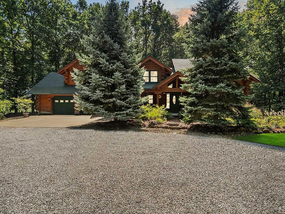 The owners of this gorgeous property set out with the goal of creating more than just a home. They wanted a peaceful, retreat level experience. And they accomplished it. Looking for a gorgeous house, rustic decor, open floor plan, hunting property, energy efficiency, privacy, excellent schools, tight knit community, pole building, pond, renewable energy generation, or incredible build quality? This is your chance to have it all. Almost 70 tons of logs were used in the construction of this incredible house. It's built like a tank and sure to last the test of time. Every aspect was planned and designed with longevity and utility in mind. The 26 panel, 3 battery solar energy system, combined with the outdoor wood burner keep your utility costs lower than much smaller homes. And the house was built almost 1600 feet from the road so you'll have all the privacy you could ever hope for. The 32x48 pole barn features a 12 ft door (perfect for your camper), full kitchen and bathroom, its own 140ft deep well, water heater, and 220 amp service. Perfect for hosting huge parties. The attached garage has radiant in-floor heat and a mini split for cooling and supplemental heat. Step inside and you'll feel like you've been transported to a gorgeous lodge in the deep forest. The vaulted ceilings, pristine woodwork, stone lined fireplace, open floor plan, and sparkling hardwood floors offer the perfect mix of that rustic feel and luxury. Walk out the backdoor to your multi level Trex deck, and enjoy the peaceful view of your woods. Rest easy knowing that even in a power outage you can rely on your whole house Generac backup system. Do you have a family member or friend that wants to stay with you for a while but still wants their own space? The sellers have converted an old farm building into separate living quarters complete with living room and second story bedroom. This home is truly one of a kind. Call for your private showing today!