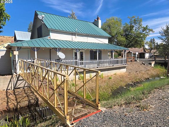 Opportunity knocks! If the dream is to have a cute retail home business and live on site in sunny Oregon on gentle creek in the countryside then this is the place! 1700+ square feet, 3 Upstairs bedrooms, with kitchenette & bathroom, lovely downstairs set up for cafe & retail gift shop, full kitchen, large living area & bonus room, storage, & full bathroom could easily be converted to whatever you want to do. Updated laminate flooring throughout whole home. Updated interior painting, updated fiber cement siding, metal roof on community utilities. Outdoor covered deck over looks small creek. Plenty of parking & possible RV parking. Easily visible from main road. Serves large community with lots of outdoor recreation users. MHNF, Pine Hollow & Rock Creek Reservoirs, White & Lower Deschutes Rivers all within 5 to 15 miles.