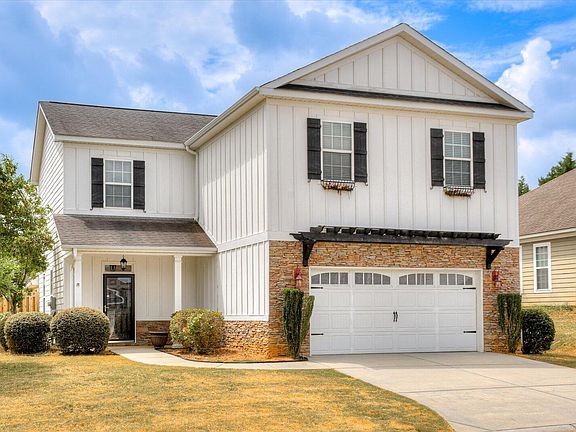 Discover this beautiful 4-bedroom/flex room, 2.5-bathroom residence featuring a spacious great room and breakfast area. The large dining room, perfect for entertaining, includes a butler's pantry with granite countertops and exquisite trim work. The kitchen boasts granite counters, stained cabinets, and stainless steel appliances. Hardwood floors flow seamlessly through the breakfast room, kitchen, foyer, dining room, and half bath. Upstairs, you'll find all the bedrooms, a bonus room, and an oversized laundry room, with both bathrooms showcasing tile flooring. Ample closet space is a highlight in every bedroom. Enjoy relaxing on the covered back porch with a ceiling fan, ideal for hot summer days, in the privacy of a fenced yard.