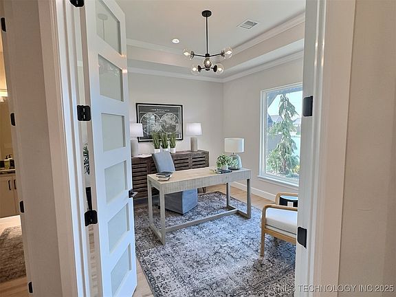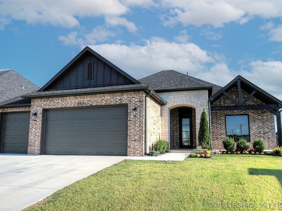 Fantastic new construction in highly sought Bixby Schools at Addison Creek Crossing. This spacious floor plan is built for entertaining with open concept living and split floor plan. This home has 4 bedrooms, (2 up and 2 down), 3.5 baths, home office, game room and 3 car garage! The kitchen features stainless steel appliances, a built-in 66" Frigidaire XL refrigerator/freezer, and soft close custom cabinetry throughout. The primary suite opens to the laundry room. Many extras include: spray foam insulation, tankless hot water heater, full tile showers, energy efficient HVAC, and hardwood floors. Enjoy the walking trails and ponds in this wonderful community with easy access to dining, shopping and highways. Builder and listing agent are the same.