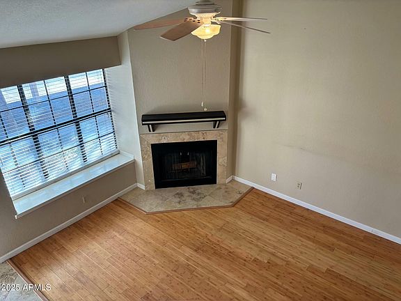 The largest and the most desirable end unit, close to pool and furthest from the street. Split level 3 Bed, 2Bath town home with vaulted ceilings including one bedroom downstair with shower bath. Great room with real fireplace and vaulted ceilings. Two staircases were rebuilt for $12,000 with additional storage added underneath. Natural bamboo floors installed throughout in 2013. New upgraded A/C unit installed in 2023 ($16,000), roof is 12 years old. Separate large storage on patio. Green belt behind the unit. Covered parking, community pool, HOA maintained landscape, water-garbage-pool maintenance-roof replacement are all included in HOA fees. WASHER/DRYER included! Great area close to parks, Paradise Valley schools district, shoppings.