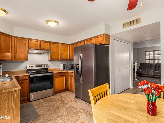 Enjoy the vibrant Scottsdale lifestyle w/quick access to trendy spots, benefiting from easy travel routes provided by Loop 101 and SR 51 putting you minutes away from Kierland, Scottsdale Quarter, Desert Ridge, Mayo Clinic, shopping, dining, parks, golf & hiking trails & proximity to highly rated schools. Community features a sparkling pool & spa for relaxation & recreation, along w/assigned covered carport parking steps from front door & HOA-included water fees for added value! The home itself includes, private rear patio w/storage shed, two split upstairs bedrooms w/soaring vaulted ceilings, cooling ceiling fans, providing a spacious & airy feel! Upgrades include removal of popcorn ceilings in both bedrooms and the living room (08/2020), new carpet on the stairs & all of upstairs (09/2020), new tile, vanity, mirror, light fixture, & toilet in the master bathroom (05/2023), new blinds downstairs (09/2021), new dishwasher, range, & hood (01/2024), new wood slats on the back patio gate (06/2022), freshly painted (08/2020), new ceiling fan in the front bedroom (01/2024) & HOA did NEW ROOF 2023.