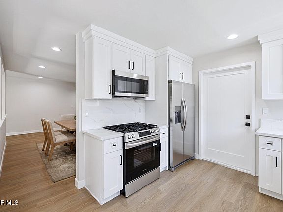 This stunning, highly upgraded single-story home on the east end boasts boat/small RV/Trailer parking and a wealth of luxurious features. With 5 bedrooms and 2 baths, this home has been update top to bottom. The kitchen is a chef's dream, featuring top-of-the-line Bosch appliances, quartz countertops, and premier soft-close cabinets. The AC and ducting were replaced in 2016. Inside, you'll find recessed lighting, crown molding, upgraded baseboards, and wood-like laminate flooring. Newer dual-pane windows and attic insulation keep the home energy efficient. Outside, the entertainer's backyard is fully landscaped, very private—new driveway, new garage door.