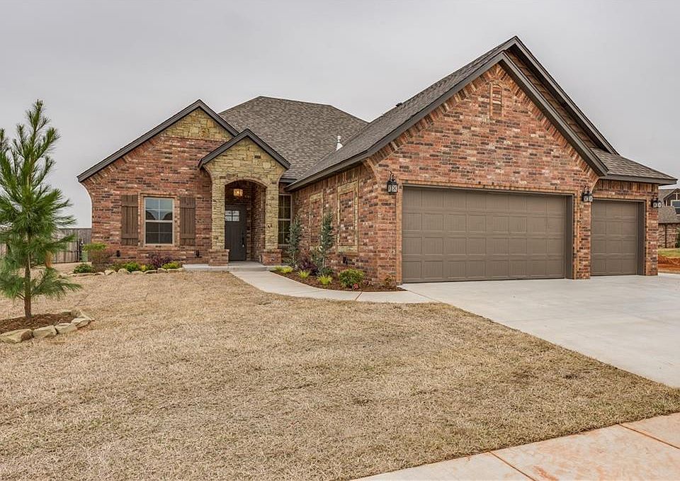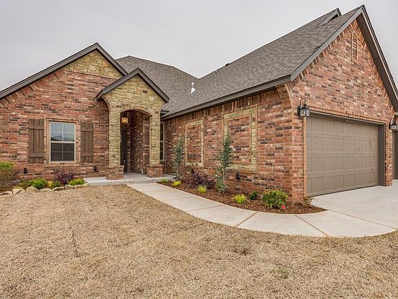 MONTICELLO SIGNATURE HOMES NOW BUILDING IN LEDGESTONE, If you follow this Builder you are familiar with their quality and reputation. Second to none!! Come see this amazing home, just finished,No neighbors behind you on this one. 3 bed with game room/theatre room or 4 bed. Upstairs is completely finished out with a closet and full bath, Study with a closet, could be used as 5th bed, 3 full baths, quality built and affordable. Storage closet in the garage, perfect mixture of wood beams, barn door, clean sleek look throughout, large linen, panty, large shower in master bath, master closet with built ins, tiled wet areas and living room, carpet in beds, huge center island, security system, sprinkler system front and back, landscaped and ready to move in.GREAT LOCATION, next to Mustang City Park, Community Center, Public pool, dog park, library and ball fields!!