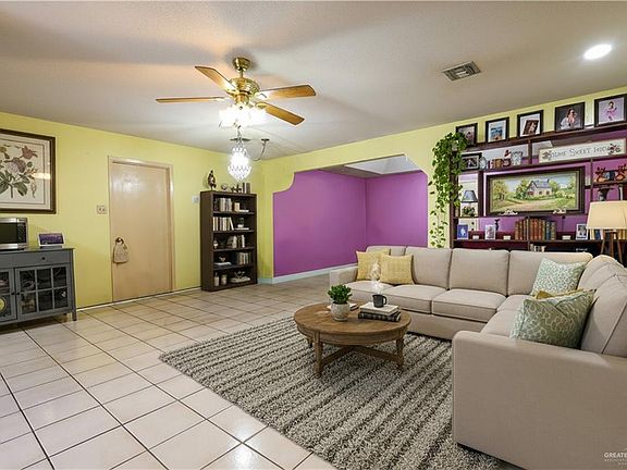This well-kept North McAllen home offers a spacious layout with two living areas, decorative ceilings, tile flooring, and a versatile bonus room that adds extra flexibility for your lifestyle needs. Recent updates include a new roof in 2023, 2022 AC system, programmable Nest thermostat, water heater installed in August 2025, and fresh exterior paint in April 2025. The home also features ADA-accessible elements for added convenience. The kitchen opens to the main living spaces, and the backyard includes mature trees, a covered patio, and a storage building—ideal for outdoor enjoyment. Conveniently located just off N 23rd Street, this property offers quick access to shopping, restaurants, schools, parks, and major city amenities in the heart of North McAllen. Some photos have been virtually staged.