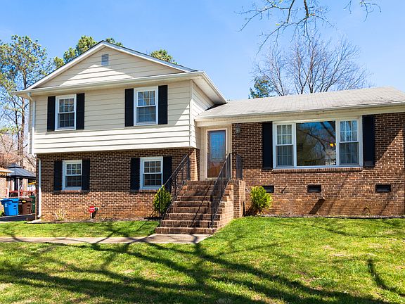 Wonderful split-level home in Old Farm neighborhood of Durham! This home offers 4 bed, 2.5 bath, hardwood floors, and all new interior paint. Living room featured on main level with lower level family room/den with centerpiece gas (propane) fireplace that also includes bedroom and half bathroom. Kitchen features granite countertops, tile backsplash, stainless steel appliances, and tile floor. Bathrooms features tile surround shower/tub. Great open lot on 0.29 acres with walkout patio and storage shed.