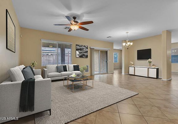 Gorgeous 4-bed, 2.5-bath home in the prestigious gated community of Riverwalk Estates! This move-in-ready home features a 3-car garage, extended driveway, and an extra-wide RV gate. Enjoy low utility costs with a 20 YEAR prepaid solar lease grandfathered into SRP's old, lower rates and fees,Seller electric bills for: March - $42.22 April - $46.77 May - $91.22, —a rare find! Inside, you'll love the spacious open floor plan, 18-inch ceramic tile, neutral color palette, and abundant natural light. The kitchen is perfect for everyday living and entertaining, with stainless steel Whirlpool appliances, granite countertops, and ample space. Granite continues into all bathrooms for a cohesive, upscale feel.