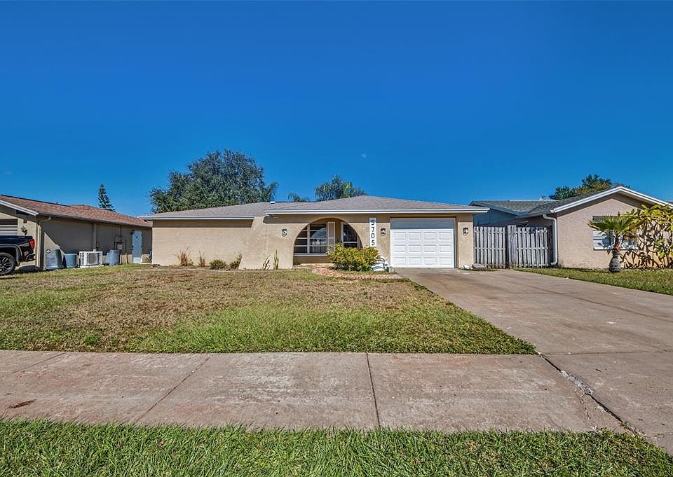This beautifully updated single-story 2-bedroom, 2-bath, 1-car garage home offers comfort, style, and peace of mind with modern upgrades throughout. Featuring new vinyl flooring (with tile in the kitchen), fresh interior paint, and fully renovated bathrooms, this move-in-ready property shines with care and attention to detail. Enjoy the bright and open living room, dining area, and family room, along with a relaxing screened lanai—perfect for outdoor entertaining. The kitchen includes stainless steel appliances, including a refrigerator and dishwasher. The primary suite offers a private ensuite bath and a spacious walk-in closet. Additional highlights include ceiling fans, a fenced backyard, and a location on a quiet street. Major updates include a new roof (December 2024), a brand-new water heater (2025), and a new A/C system (2025). This home is truly move-in ready—schedule your private showing today!Flood quote attached at $921/yr.