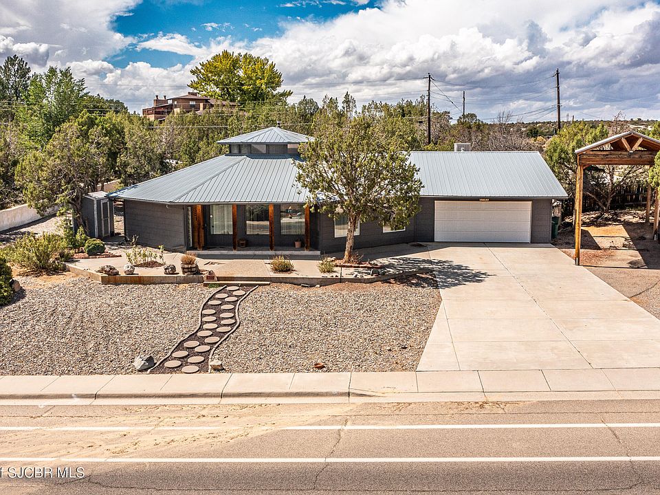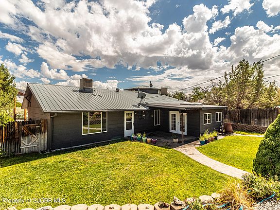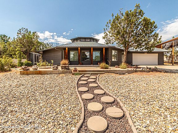 Southwest inspired, one-of-a kind 3-bedroom, 2-bathroom home located in the highly desirable Foothills neighborhood. As you enter the home you are greeted with a sunken octagonal shaped living area surrounded by solid wood posts and a pellet fireplace, a true conversation piece! The interior of the home has been freshly painted throughout and new carpeting installed. Several living areas provide space to spread out. The oversized lot includes a large covered RV parking space, an enclosed sun room off of the master bedroom, a terraced back yard, raised garden beds, two storage sheds and side yard access. The home features a metal roof, baseboard radiant heating, two evaporative coolers, a possible two-car, cooled garage (the build out pantry currently limits the second space) and an enclosed animal run with access into the garage. Broker related to seller.