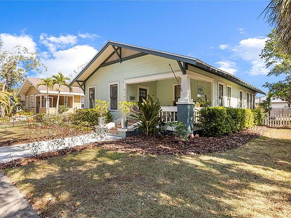 Exquisite 1920s Bungalow with Private Guest House in Beloved Old Seminole Heights! Step back in time with all the comforts of today in this superbly renovated 1920 Sears Roebuck bungalow, complete with its very own private guest house. The main home features 2 beds and 2 baths (1,360 sqft), PLUS a 1 bed/1 bath detached guest house (328 sqft) and garage just out back! Curb appeal is everything, and this home immediately charms with beautiful landscaping, classic lines, and a welcoming presence. Stroll up to the inviting covered front porch—perfect for morning coffee or lazy afternoons—and step inside to discover the best of old and new. Original heart pine floors gleam underfoot, complemented by restored picture molding and thoughtful craftsmanship that honors the home’s heritage. Sunlight drenches every corner thanks to an abundance of windows. The beautifully redesigned kitchen blends vintage soul with modern sophistication, featuring quartz countertops, a glass tile backsplash, a farmhouse porcelain sink, 42" upper cabinets, and stainless steel appliances including a gas range. The conveniently located laundry room sits just off the kitchen. Additional updates include an updated electrical panel (2019), a gas water heater, a newer roof (2022), and an HVAC system from 2016, offering peace of mind for years to come. A transferable termite warranty further enhances the value and protection of this lovingly maintained home. The 2nd bedroom is accessible from the living room or hallway, and the well-appointed guest bath is centrally located. The spacious primary suite offers a huge walk-in closet and a stylish en suite bath with classic subway tile. Step outside to your generous backyard with outdoor shower—ideal for entertaining, gardening, or simply enjoying the Florida sunshine. You may even consider adding a sparkling pool… and why not? Your backyard oasis provides all the space you need. A rear driveway offers off-street parking for two cars. At the back of the property awaits a fully renovated 1 bed/1 bath guest house, privately metered and ready to host friends, family, or even serve as a home office or income-producing opportunity. With its own living area, kitchen, and bath, it’s the perfect extension of this exceptional property. Homes like this—steeped in charm, thoughtfully updated, and offering rare flexibility—don’t come along often. Come fall in love with the magic of Old Seminole Heights. Hurry—this one’s something special!