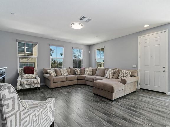 Beautiful 4-bedroom, 3-bathroom energy-efficient Meritage Home in the quiet and highly desired gated community of Tesoro at La Sierra. You will love this corner lot location with plenty of patio space and lawn area. Private gated patio entryway leads to an open layout floor plan with recessed lighting and laminate wood flooring. Great room is open to the fabulous kitchen with a large center island, granite counter tops, pendant lighting, stainless steel appliances and walk-in pantry. From the dining area you have a sliding glass door that opens to the patio that lets you bring the outdoors in for fun parties all summer. One bedroom & bathroom are located on the main level, as well as extra storage under the staircase & access to the 2 cars attached garage. Upstairs features a loft with a nook with built-in desk that can be used as a study area. The master suite offers a large walk-in closet & spacious en-suite bathroom with dual sinks, soaking tub and separate shower. Two additional bedrooms with custom murals on the wall, walk in closets and a Jack-and-Jill bathroom. Convenient upstairs laundry room with sink and built-in cabinets. This community offers a neighborhood pool area, barbecue area, green space and a tot lot for fun outdoors. This home is conveniently located near schools, shopping center, and parks.