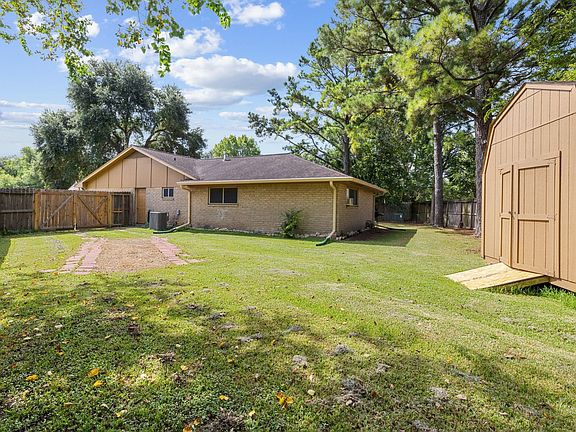 Welcome to 5705 Woodville Lane, tucked away in a quiet cul-de-sac with no HOA in the heart of Pearland! This charming home offers unique spaces, including a cozy front sunroom and a bright breakfast room perfect for mornings filled with natural light. The open family room flows beautifully for gatherings, while large mature trees create a peaceful, shaded retreat. Enjoy privacy with no back neighbors, plus a double gate leading to the backyard with a huge shed—ideal for hobbies, storage, or a workshop. The oversized lot gives you room to spread out and enjoy outdoor living at its best. Located just minutes from Pearland Town Center, with shopping, dining, and entertainment at your fingertips, plus easy access to 288 and Beltway 8 for commuting. Parks, highly-rated schools, and recreation nearby make this the perfect place to call home. Don’t miss your chance to own this hidden gem in Pearland!