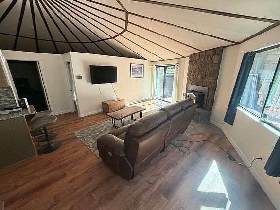 Located close to the mall, Large deck. This 2 bed, 2 bath home has been updated throughout. Newer floors, kitchen cabinets, Granite counter tops, ledge rock backsplash, newer appliances, new lighting, both bathrooms completely remodeled with tile shower, new vanities, solid surface counter tops, T&G ceilings int the bedrooms, new doors, wood burning wood stove, This home has a lot to offer.