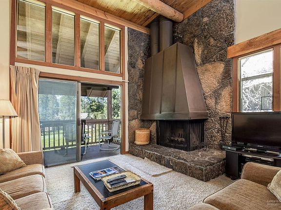 Rustic charm in the multi-level condominium with a fantastic location near the Sunriver Village, Lodge, and the SHARC! Located along the tee boxes of 12th fairway of the Meadows Golf Course, this two bedroom and a 2 bath unit offers a reverse living floor plan and golf view. Lava Rock wood burning fireplace in the Master Suite & living room makes for cozy winter evenings. Relax in the sunshine on the private roof top deck. Let your Sunriver adventure begin!