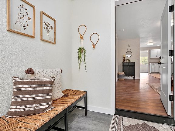 Super cute move-in ready home in the heart of Ferndale. Moments from everything downtown; parks, restaurants, breweries, schools, shopping & more. The lovely fully enclosed front porch welcomes you w/ ample space to take off your coat & shoes. Completely remodeled kitchen, freshly updated bathroom, brand-new LVP flooring throughout & new appliances & H20 heater. Sunshine pours in from the charming back porch. The laundry/mud room connects the garage to the rest of the home & serves as a secondary front entrance. Plenty of off-street parking w/ room for RV. Attached garage w/ space for your workshop. Large fully fenced private backyard backs vacant land on 2 sides. Options abound w/ RMH (Residential Multifamily High) zoning; buyer to verify.