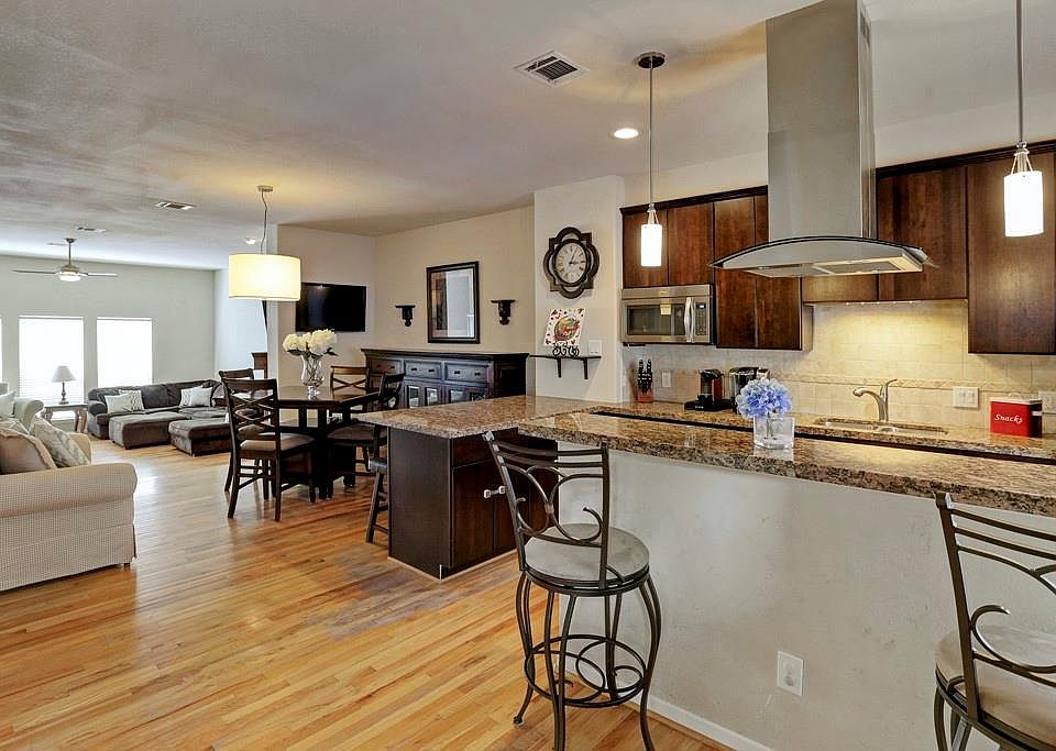 Gorgeous Townhome in Prime Location, just minutes from Downtown/Galleria/Energy Corridor!! Features S/S appliances, granite counter tops, oversized bedrooms equipped with huge walk-in closets and private bathrooms! Spacious 2nd floor with custom fireplace/beautiful refinished hardwood floors! Luxurious master suite with spectacular en suite bathroom! Amazing rooftop with impressive views of Downtown! Brand new carpet/paint! Attached 2 car garage, with ample parking space at adjacent park!