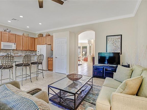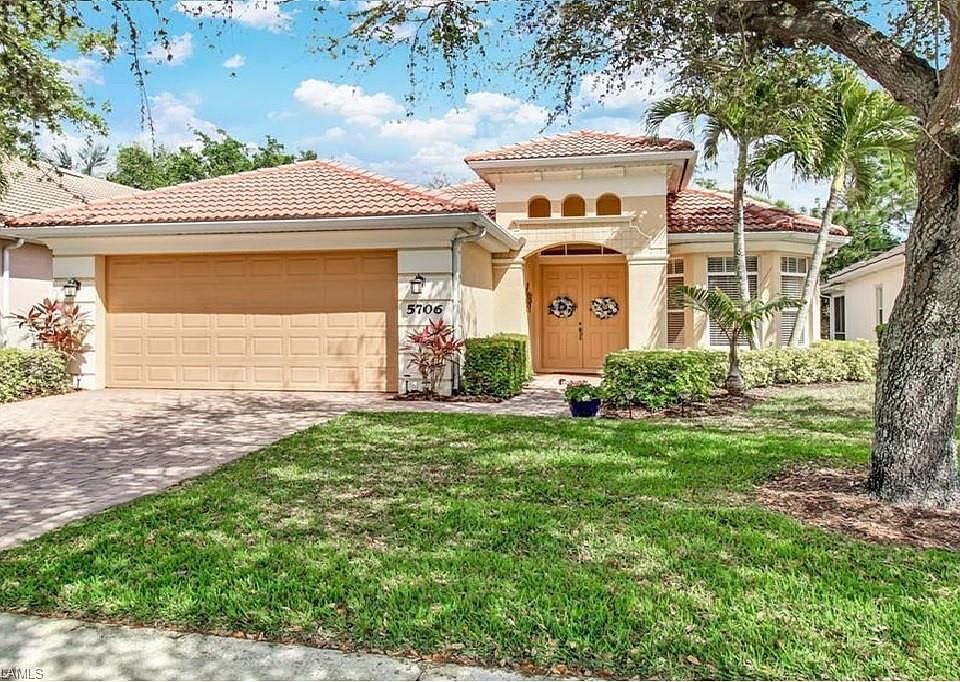 Investors - Amazing model-like home! Unoccupied, easy to see! Perfect for Investors -- Annual renter starts June 1 -- clean, solid couple, no pets! LOW fee includes lawn maintenance, cable and internet. Grand double doors lead into an open layout with spacious living and dining areas, that flow into a fabulous cook's kitchen. Adorned with gorgeous Granite counters, wood tall cabinets, breakfast bar, eat-in kitchen and sliders to extemded lanai. Extremely spacious Master suite features a large walk-in closet, soaking tub, separate shower. Two more bedrooms and bathroom are nicely located in front for privacy. Tile and wood flooring, NO carpet. Crown moldings, Tray ceilings, arches are just some designer elements. May be furnished! Laundry room with wash tub. Oversize 2 car garage, epoxy floor. NO required Golf Fees! Abundant Social Membership amenities, Club, pool, dining, bar, billiards, ping pong, card rooms, library, fire pit. Active Fitness, classes, bocci ball, har-tru Tennis Courts, Golf May-Nov plus LONG list of Reciprocal Club use! All in highly sought location, 4 miles to Olde Naples, beach, shops, dining, art, theatre. All conveniences out front and back gates.