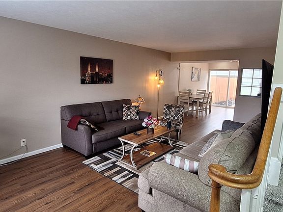 Welcome home! Move right in to your beautifully renovated 2 bedroom, 1.5 bathroom townhouse in the desirable Georgetown of Lyndhurst condominium community. The first floor opens into a large living room and dining room with newer modern plank flooring. A half bathroom is conveniently located next to the living room. The kitchen is adjacent to the first floor living and dining areas and features granite countertops and stainless steel appliances. A sliding glass door in the rear of the first floor opens to a private fenced wooden deck and stone patio, with utility closet, additional storage, and a grill. At the top of the stairs you'll find a full bathroom with a newer tile floor and granite countertops. A large in unit laundry closet with the washer and dryer is in the upstairs hallway. At either end of the hallway you will find the two spacious bedrooms with modern plank flooring. Stepping outside the unit you'll find a large green space immediately in front of your unit, and by taking a short walk around the corner to garage #3 and you'll find your own separately parceled single garage space which is included with the purchase of this townhouse. In exchange for the very affordable HOA fees, you'll receive 24/7 gated security, snow removal and landscaping, an outdoor pool, a fitness center, basic cable and high speed internet, a private party center that residents can reserve, a separate community laundry room, and a playground. The owners unit can be delivered furnished. This community is pet friendly and is conveniently located near I-271, and shopping and dining at either Legacy Village or Pinecrest.