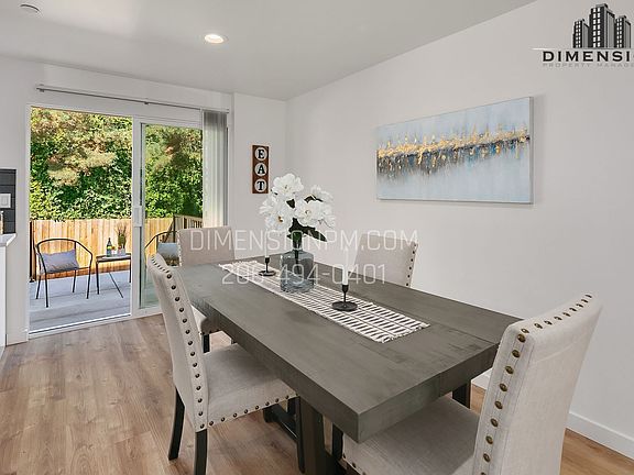 This townhome boasts a modern aesthetic with hardwood floors throughout, adding a touch of elegance to your living space. The kitchen is a chef's dream, equipped with stainless steel appliances, quartz counters, and shaker cabinets, offering a sleek and stylish space for all your culinary adventures. The 1.5 bathrooms are well-appointed, providing convenience and comfort. The townhome also features washer/dryer hookups, ensuring your laundry needs are easily met. Step outside to your own private patio, a perfect spot for relaxation or entertaining. This pet-friendly townhome is a perfect blend of style, comfort, and convenience. Don't miss out on this gem in Lynnwood!