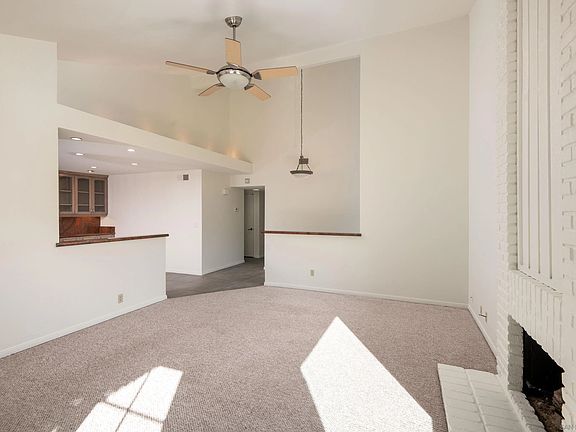 Beautifully remodeled single-story home nestled in a tranquil setting in Del Cerro. The spacious and comfortable 3 Bedroom & 2 Bath floorplan flows seamlessly with two separate private outdoor spaces. The welcoming living room features high vaulted ceilings, brick fireplace and abundant natural light, with sliding doors opening to a large trellised patio with park-like views. The sunny gourmet kitchen features imported granite countertops, custom-lit cabinets and stainless steel appliances. The large primary suite offers ample space and privacy, two skylights, a luxurious bathroom with granite dual sinks, walk-in closet, and quiet outdoor patio perfect for reading or relaxing. Central heating & AC system for year-round comfort. Convenient attached 2-car garage with laundry & room for storage. Enjoy the sparkling pool and lush, well-maintained grounds in this exceptional Smoke Tree community. Excellent central location just minutes away from the local shops & restaurants of Del Cerro, including Del's Hideout BBQ, Einstein Bagels, Del Cerro Pizza & Windmill Farms grocery store.