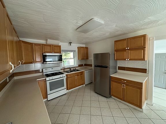 Spacious five bedroom, 2 1/2 bathroom with large flat back yard, hardwood and tile floors, vinyl windows, updated appliances, Corian countertops. Central AC, gas heat. Two driveways and on street parking. Lower floor with kitchenette, bath, rec room and walkup outside stairs may also be used as a tenant office with space for two private offices and a conference/workroom, or granny suite or extra space for family members.