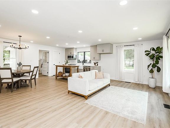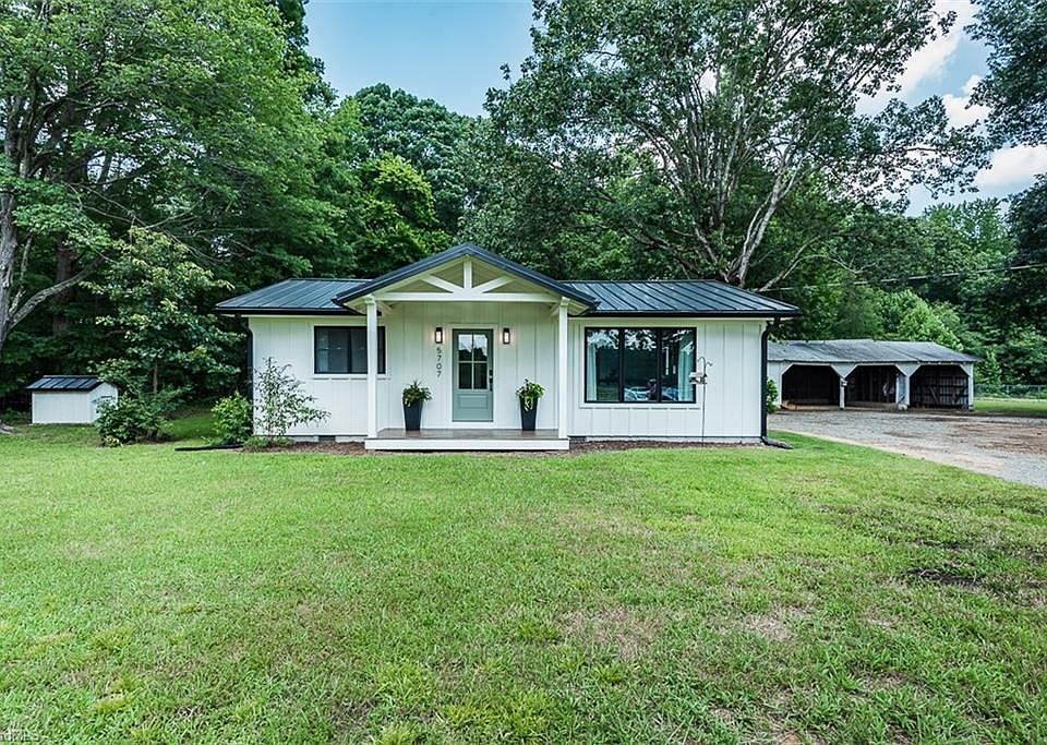 Charming restored 2-bedroom, 1-bath cottage blending timeless character with modern upgrades! Step inside to find an inviting open layout featuring wide plank luxury vinyl flooring & abundant natural light from brand new windows throughout. The beautifully remodeled kitchen showcases crisp quartz countertops, a stylish tile backsplash, farmhouse sink, and all-new appliances. Relax in the cozy living area enhanced by a sleek Touchstone electric fireplace, adding warmth and ambiance year-round. Outside, the home boasts durable LP board and batten siding and a premium 50-year metal roof for worry-free living. This thoughtfully updated cottage, situated on 2 acres, is the perfect blend of comfort, quality, and style—ready for you to move right in!