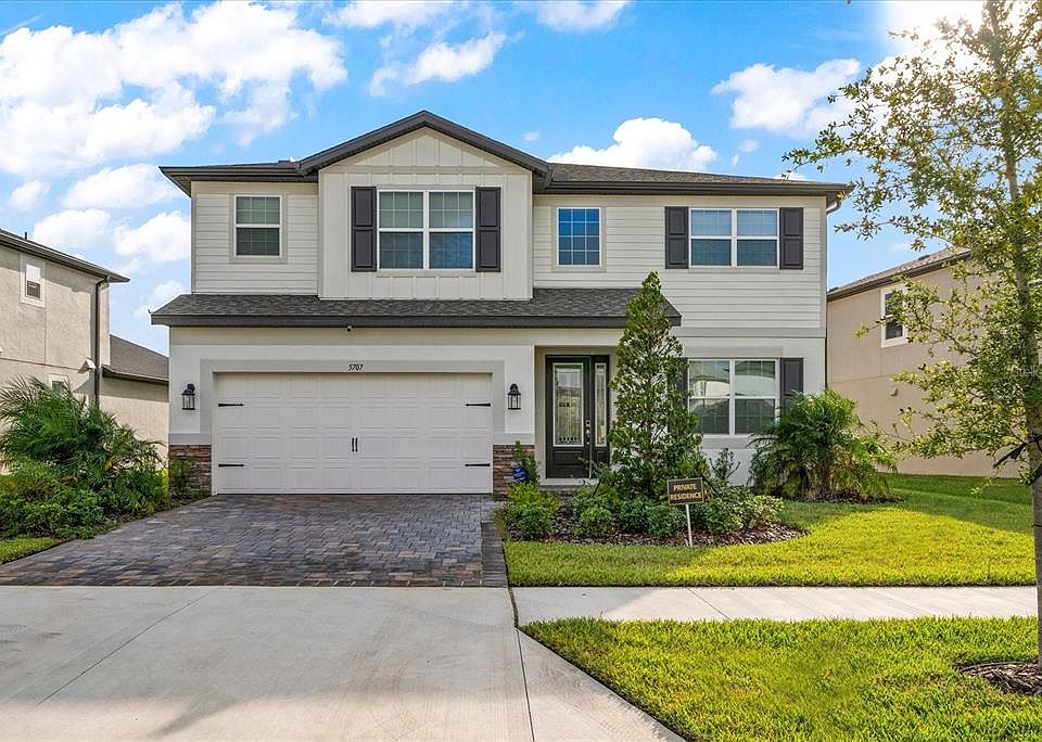Chapel Crossing-Conservation, M/I Homes built, Sonoma II Floorplan, Elevation D, a 5-bedrooms, 4-bathrooms, with 3531 heated square feet of modern living with ample space for a growing family or just space to enjoy! This 2-story has a well designed layout with generous natural light and an open contemporary feel. Well appointed gourmet kitchen with sleek countertops, stainless steel appliances, ample cabinet space, just perfect for entertaining guests. There is a bedroom downstairs that is excellent for guest or to be used by an in-law with a bathroom that is accessible from lanai area. As you walk upstairs you will find an expansive Primary Suite complete with a spacious walk-in closet and luxurious bathroom that has all you need to unwind after a long day. Additional bedrooms offer flex spaces that may be used for office(s), guest rooms or spaces left the your imagination. The home offers a 2-car base, 3 car deep garage with ample parking and storage. Not having a basement the ample 3rd car area is great for storage. Being on conservation the home is gives you privacy and beautiful view of Florida's natural habitat. If you need a quick move-in ready house that will appeal to your every need, this is the one to see.