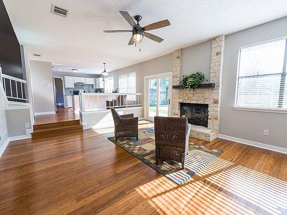 Home has vaulted ceilings, upstairs master bath, separate shower & tub, 2 fire places, 1 in main master 1 in family room, 2 dining, 2 living, bar/wet area, 2 separate bedrooms. House has laminate wood floors, hard tile and 2 car garage. House has lots of natural light, lots of space and large back yard. Home is in great area where schools are highly sought out and rank highly. Plenty to do in this area new Whole Foods, a trail to run/walk, eateries, stores, sidewalks for evening walks. Must see!