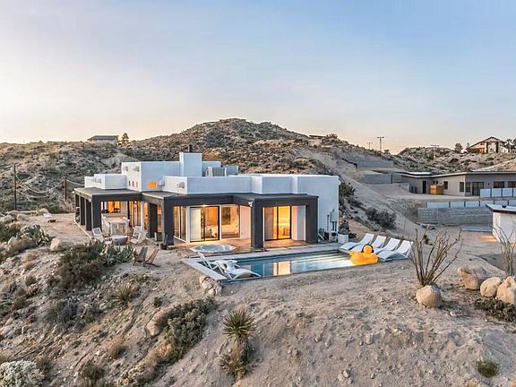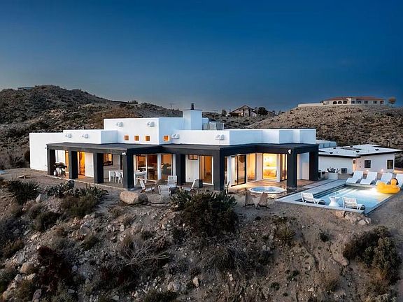 Rare Hilltop Oasis in Western Hills Estates, Yucca Valley - Panoramic Views on 1.22 hilltop Acres, 3 Bedrooms 2 Bathrooms with new pebble-tec pool and there is an in-ground spa, perfect for stargazing or relaxing after a day in the desert. Nestled at the end of a quiet cul-de-sac and perched high above Yucca Valley, this rare hilltop retreat offers unparalleled panoramic views stretching from the heart of town all the way to the majestic Joshua Tree National Park. Recently received new exterior paint as well. This home offers expansive windows and outdoor living spaces that capture the breathtaking desert scenery and magical vibe that only the Joshua Tree area can offer. This magical property provides tranquility and privacy, while remaining just minutes from top attractions: Pappy & Harriet's in Pioneertown,Joshua Tree National Park just about 15 min away, Palm Springs 30 min and Big Bear Lake 1hr 15min. Whether you're seeking a full-time residence or a weekend getaway, this hilltop gem offers unmatched lifestyle potential in a truly one-of-a-kind setting. Don't miss your chance to own a piece of the high desert dream. All information is deemed reliable, however, buyer should conduct their own inspections and due diligence to all information stated.