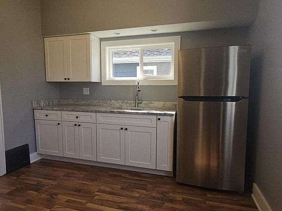 Rec roomEgress windowCustom solid wood cabinetryBrand new kitchenWood laminate flooringStainless appliancesGranite counters