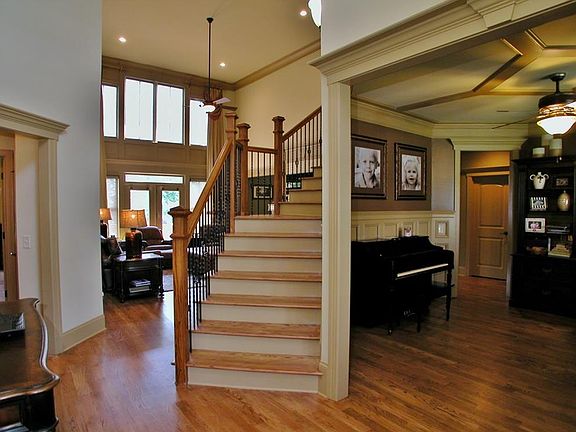Stunning executive home w/ prof landscaping, sod yard & irrigation system. 2-story foyer & great room w/ wall of windows, double-sided stone FP between great rm & kitchen. Gorgeous crown molding, trim, wainscoting & beadboard details. Office w/ coffered ceiling. Beautiful gourmet kitchen, walk-in pantry, double wall ovens. Spacious owner suite w/ dbl trey ceilings, vaulted bath, tile shower w/ dual heads. ALL closets are custom, PLUS each BR has own bath. Great "drop station" w/ shelves & hooks for bags. Upgraded sound system throughout, newly refinished hardwoods.